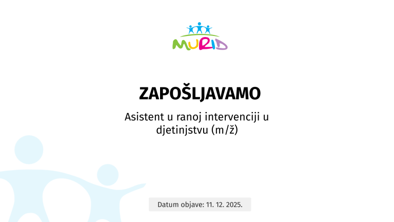 U potrazi smo za stručnjakom za ranu intervenciju u djetinjstvu (m/ž) logopedskog usmjerenja! Cilj i svrha osnivanja MURID-a je promicanje...